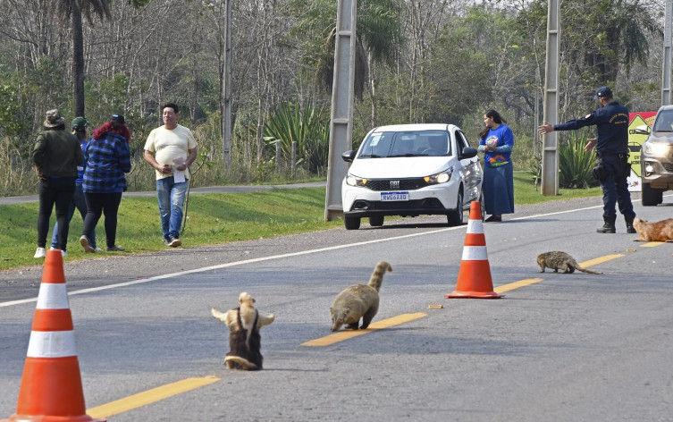 Cones na pista sugestionam a quem se aproxima de Bonito pela MS-178, a principal via de acesso ao maior polo turístico do Estado, uma blitz já na chegada. Contudo, ao ficar mais perto, animais são avistados próximos aos cones e uma equipe com papéis na mão conversa com os condutores parados. O objetivo ali é conscientizar quem pega a estrada rumo ao Festival de Inverno de Bonito.