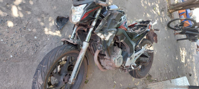 Motocicleta ficou bem danificada na colisão
