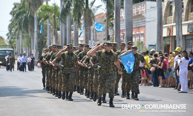 Nem mesmo o Sol forte, com termômetros chegando à casa dos 32°C, impediu que os corumbaenses prestigiassem o desfile de 07 de Setembro, na manhã desta quarta-feira, em homenagem aos 200 anos da Independência do Brasil. O público foi chegando e se acomodando ao longo da avenida General Rondon para ver a passagem das instituições militares e representações escolares.