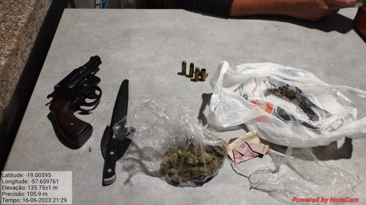Arma, munições, droga e faca apreendidas