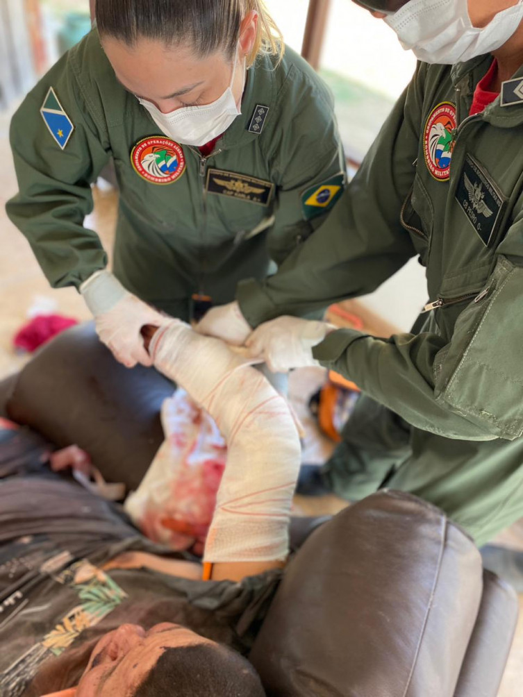 Equipe do Grupamento de Operações Aéreas do Corpo de Bombeiros Militar, socorreu trabalhador rural, nesta terça-feira (29), na fazenda São Lourenço, região do Paiaguás, Pantanal de Corumbá. Ele e um companheiro de trabalho, foram atacados por uma onça-pintada na tarde de segunda-feira (28).