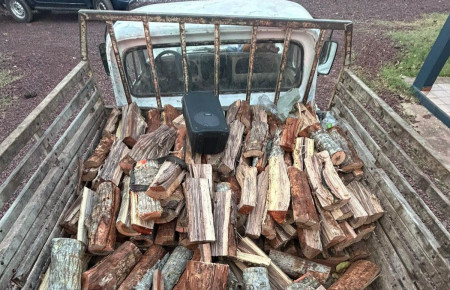 Durante a abordagem, os policiais encontraram na carroceria do veículo 236 tocos de madeira da espécie angico, que, segundo o motorista, seriam para uso doméstico. No interior da cabine, escondida sob o banco do motorista, foi localizada uma arma de fogo da marca Smith & Wesson, carregada com cinco munições intactas.