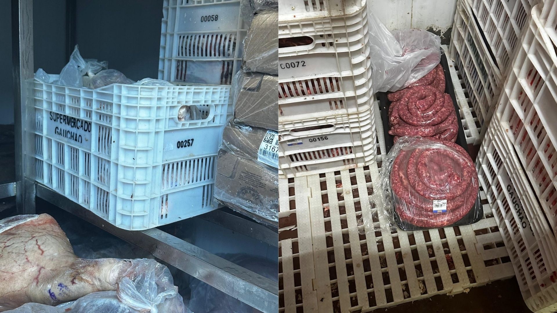 Durante a ‘batida’ policial, foram encontradas partes das carnes guardadas em câmara fria compartilhada com produtos de padaria, como pães e caixas de papelão. Na câmara fria de congelamento, foi encontrada grande quantidade de carne fracionada, muitas carnes congeladas e embaladas de forma precária — que não estavam lacradas/fechadas, sem rotulagem, sem conter data de produção e validade. Ainda, não havia o registro do serviço de inspeção SIM, SIE ou SIF.
