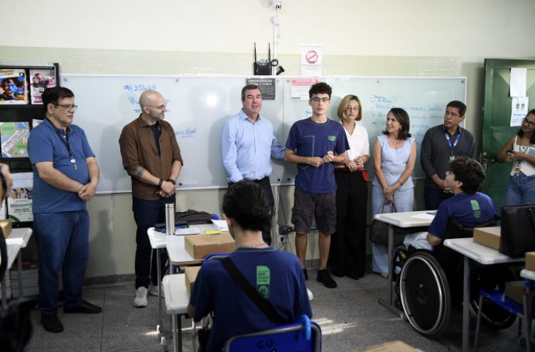 No primeiro dia de atividades, o governador Eduardo Riedel visitou a Escola Estadual Maestro Frederico Liebermann, localizada no bairro Monte Castelo, em Campo Grande. A unidade atende cerca de 350 alunos do ensino fundamental e médio e passou por reforma geral em 2023.