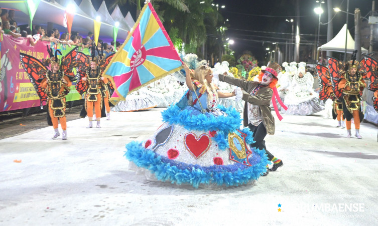 No abre-alas, a escola homenageou o circo. O carro trouxe o nome da agremiação e teve como destaque o presidente Ney Colombo, conhecido como “o último dos moicanos do carnaval de Corumbá”, e sua esposa Julieta, representando os avós, tanto na narrativa do enredo quanto na vida real.
