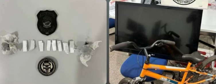 Os objetos apreendidos foram devolvidos à vítima. O caso foi registrado como furto, tráfico de drogas e receptação culposa.