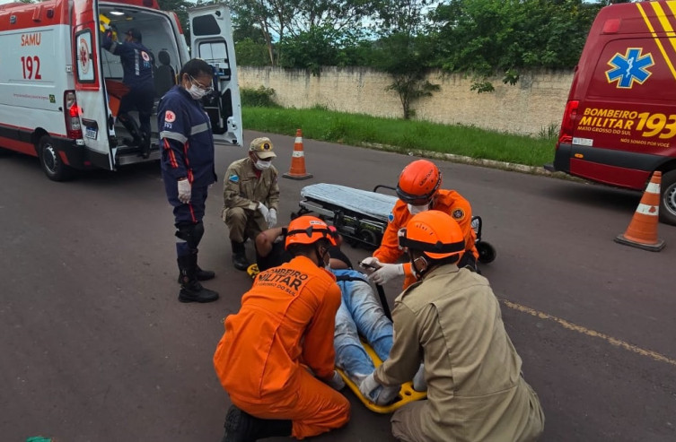 Os socorristas realizaram o atendimento pré-hospitalar ainda no local. Em seguida, o homem foi encaminhado por uma unidade do Serviço de Atendimento Móvel de Urgência (Samu), que também deu apoio à ocorrência.
